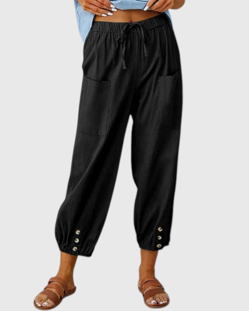 ✔ Chic Button Detailing: The button accents at the ankle add a subtle touch of flair, making these trousers stand out from everyday basics.