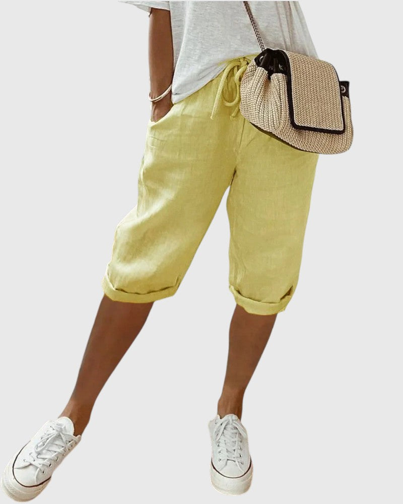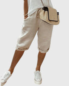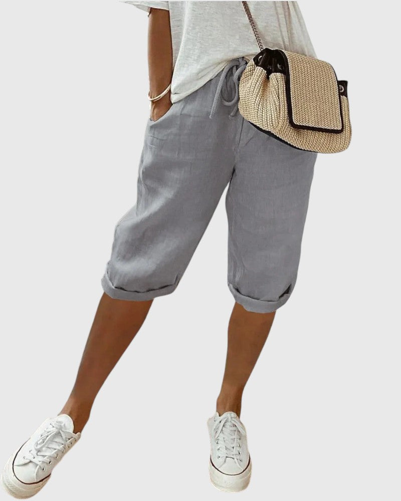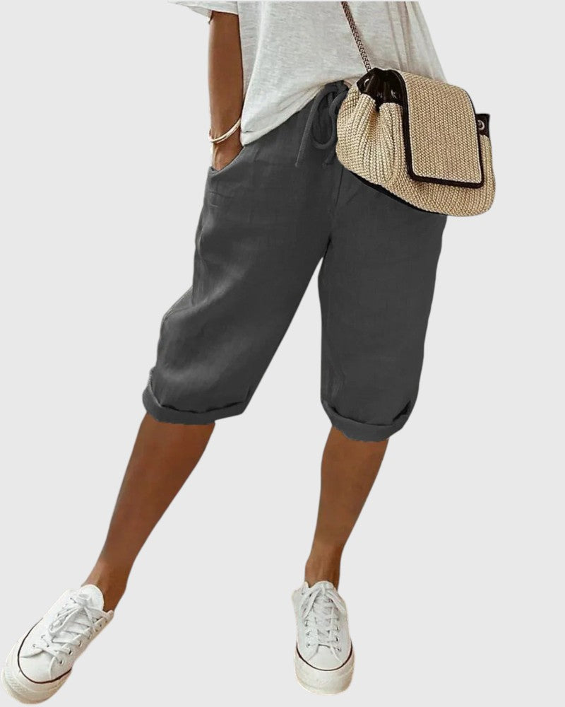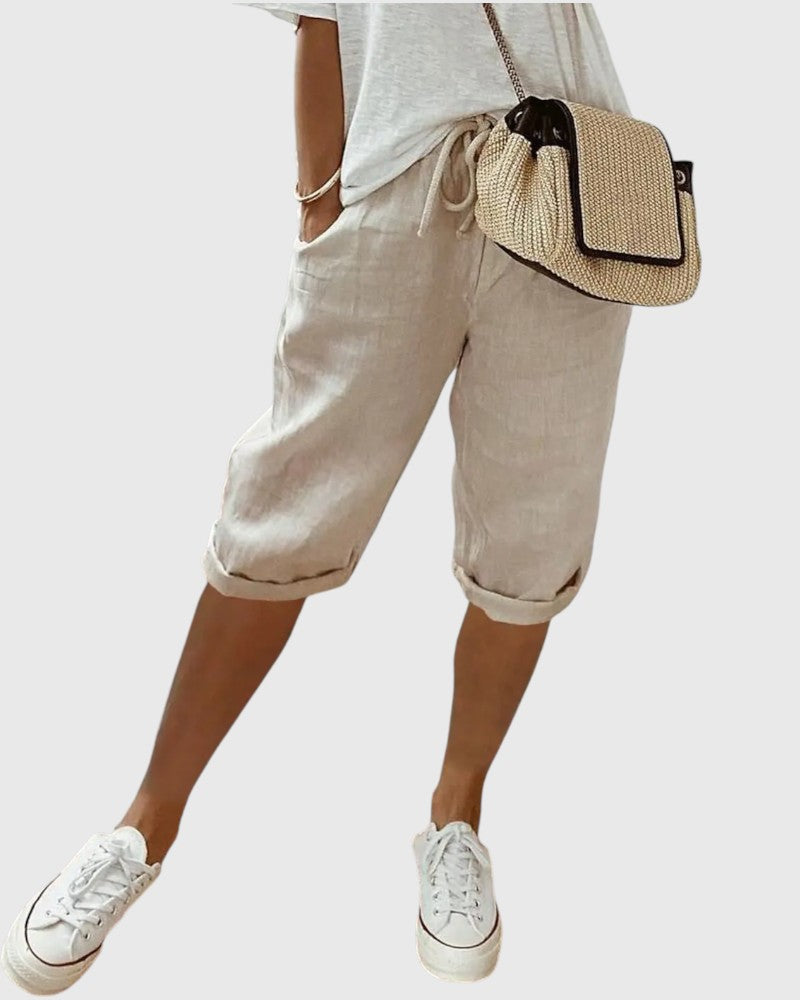 Designed with a high-rise elastic waistband and adjustable drawstring, they offer a flexible fit that moves with you — from market strolls to beach getaways and laid-back city afternoons. The solid colour finish adds an air of timeless simplicity, while practical side pockets bring casual functionality.