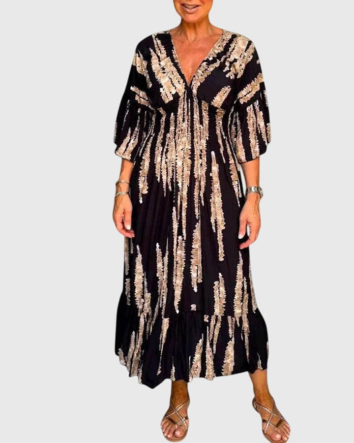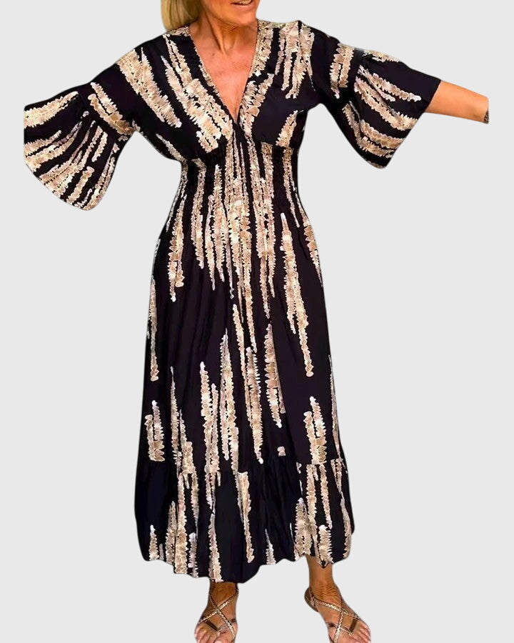 3/4 sleeve dress with a V-neck