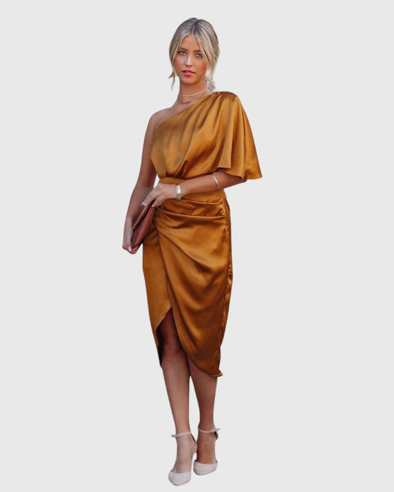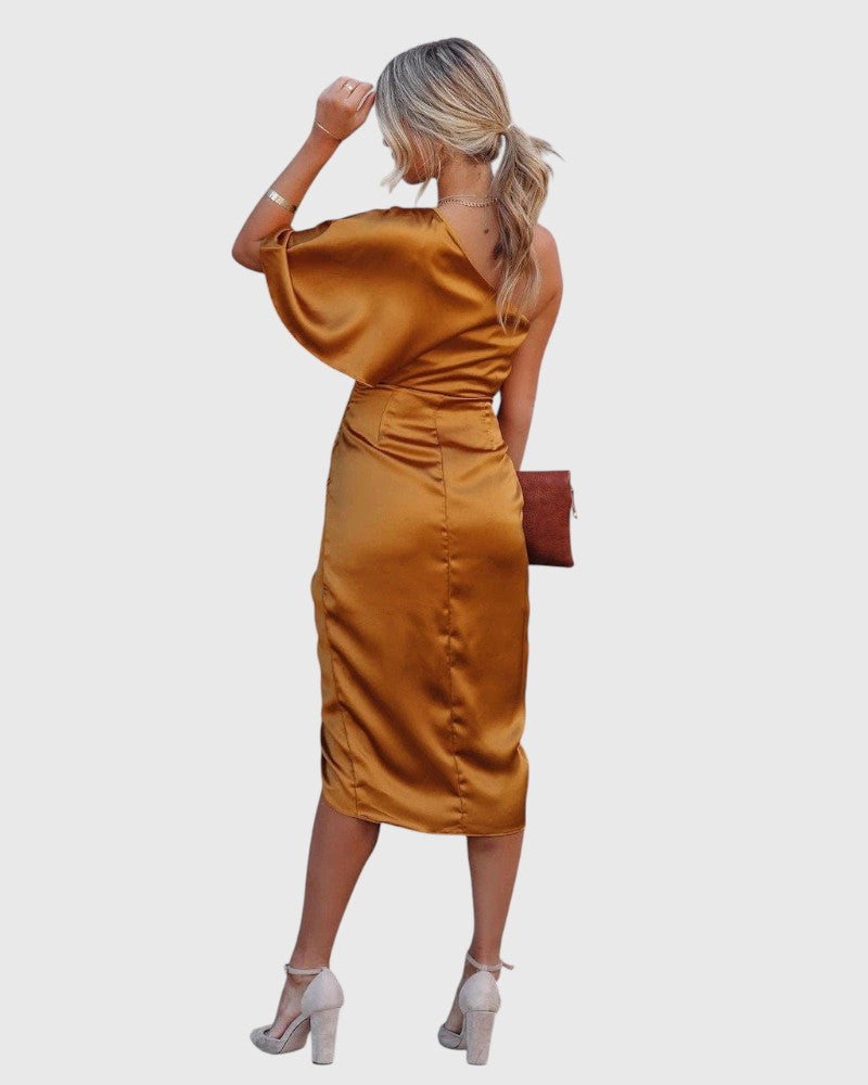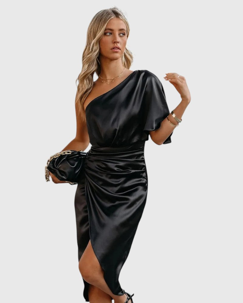 Our popular satin dress brings together timeless elegance and all-day comfort in one sleek silhouette. Crafted to glide effortlessly over your figure, it offers a graceful look that’s as flattering as it is comfortable. Whether you're heading to a formal event or dressing up for a stylish evening, this piece makes you feel confident, radiant, and refined.