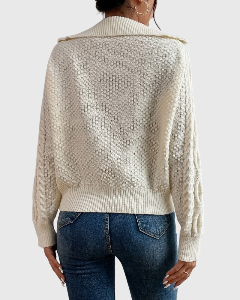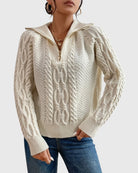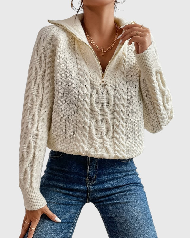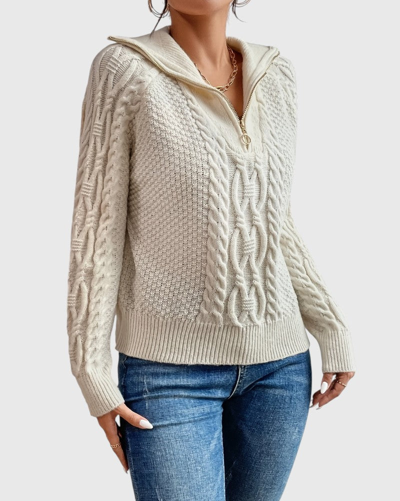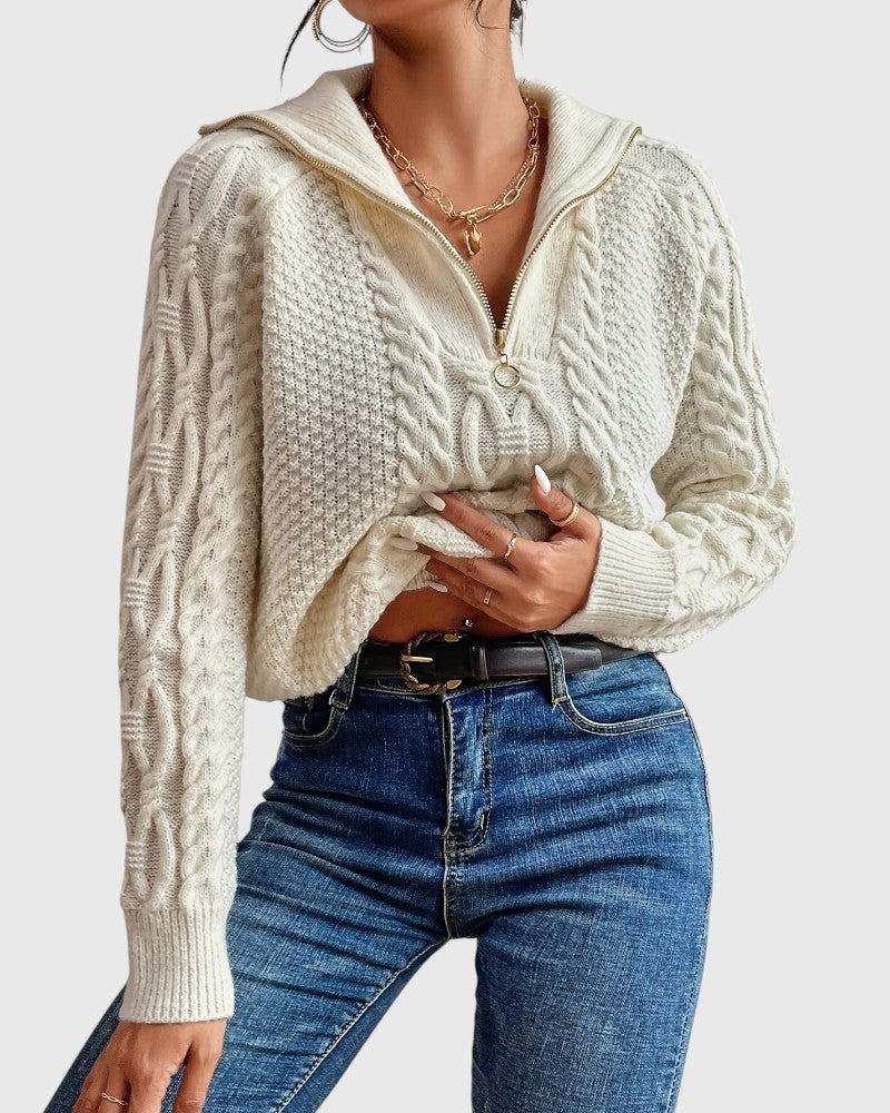 Harlow – Cable Knit Sweater with Zipper Collar – Effortless Style & Comfort