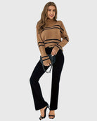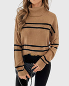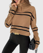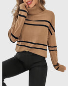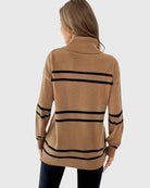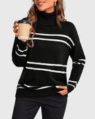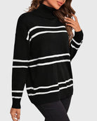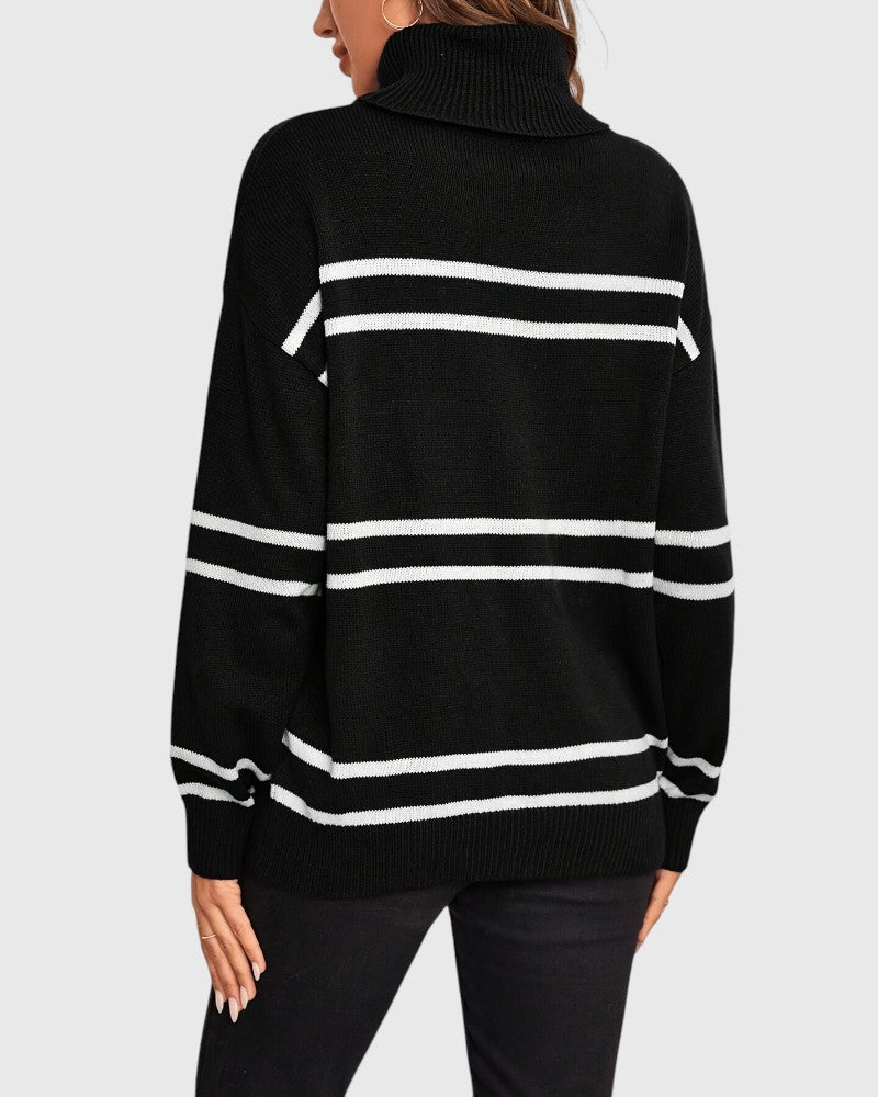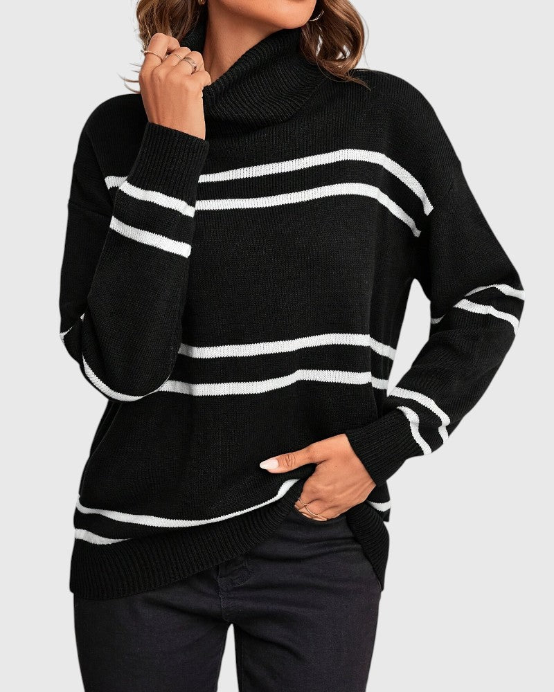 Upgrade your wardrobe with the Thea Striped Turtleneck Sweater – where comfort meets timeless style!