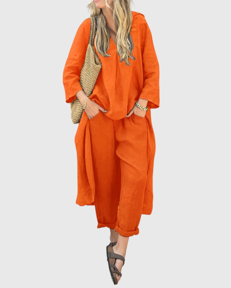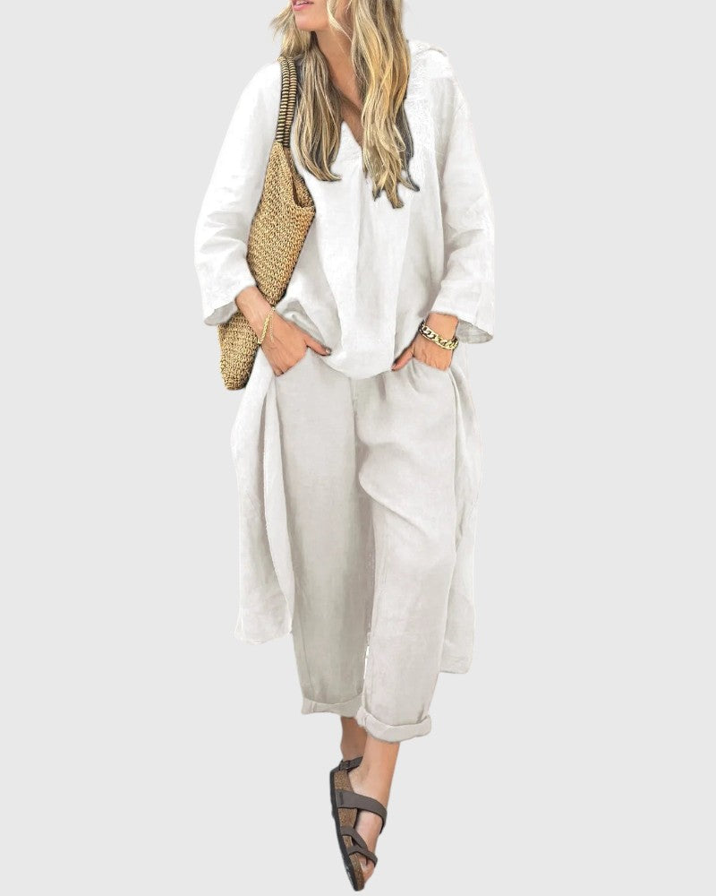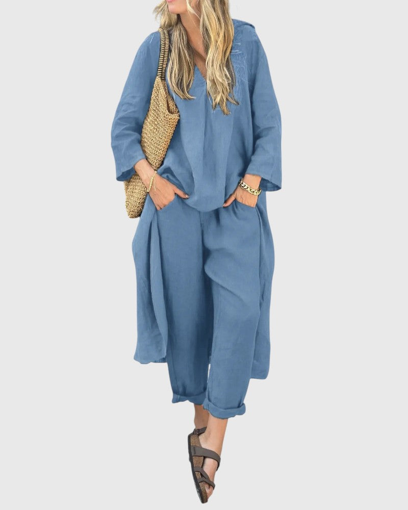 Step into the sunny season with this chic two-piece set that combines style and comfort. Whether you're heading to brunch or enjoying an evening out, this outfit allows you to stay stylish while feeling at ease. Made from a lightweight and breathable fabric, it keeps you cool and confident throughout the day.