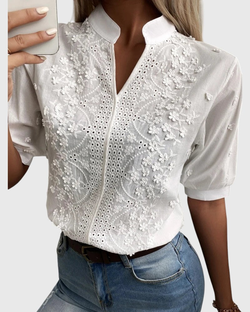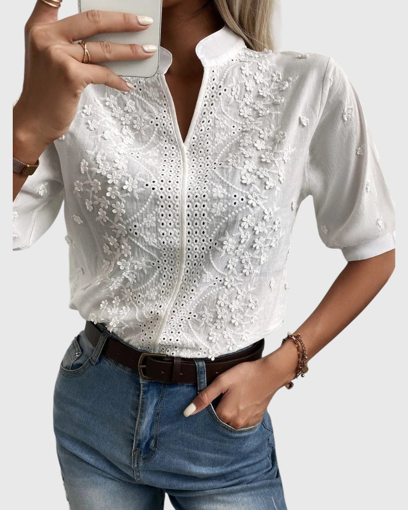 ✔ Fine embroidery details – Floral embroidery and subtle cut-out accents offer a refined and artisanal look.
