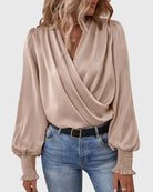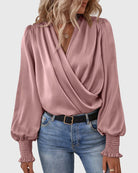 V-Neck Elegant Solid Color Blouse with Balloon Sleeves