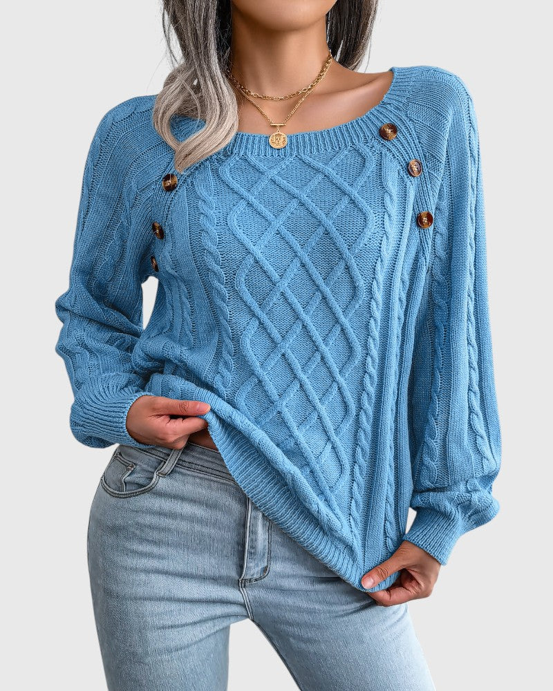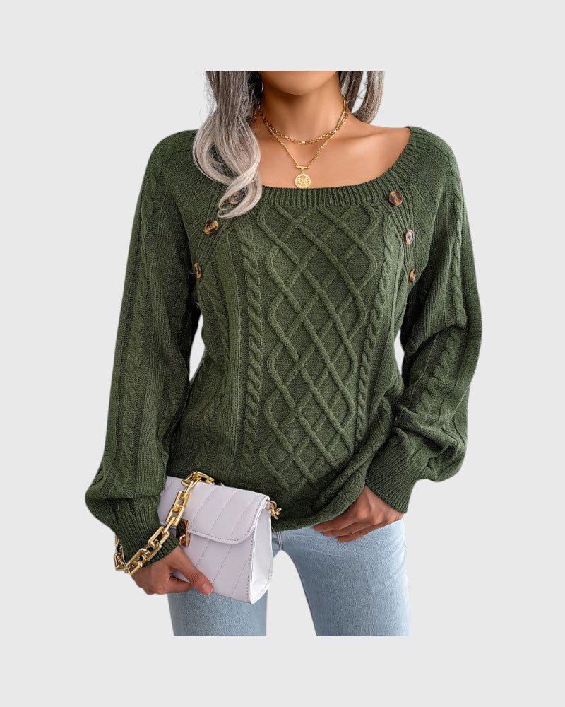 Wrap yourself in warmth and elegance with the Emilia Classic Cozy Jumper. Designed with a sophisticated square neckline, raglan sleeves, and delicate button details, this jumper effortlessly combines comfort and style for any occasion. Its soft, high-quality fabric ensures a cozy feel while maintaining a polished look.